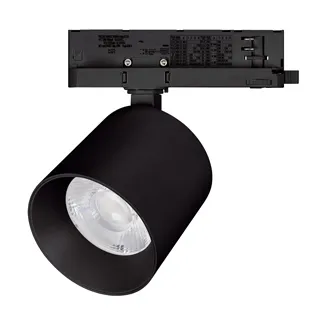 Светильник для трехфазных треков, 36 Вт. Цвет свечения ДНЕВНОЙ 4000K, световой поток 3772 лм, угол 38°, CRI>90. Корпус круглый, металл, цвет черный, IP20. Размеры Ø100x93 мм. Входное напряжение AC220-240V, мощность 36 Вт. Драйвер встроенный (24-42V, 850 mA).Пульсация <1%.