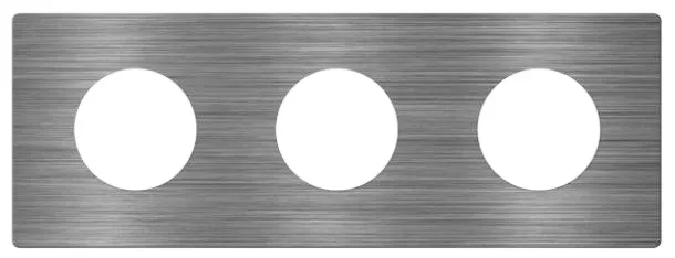 Рамка алюминиевая на 3 поста, под встраиваемый механизм. Вырез под функциональную часть - круг. Цвет - серый. Ориентации монтажа - горизонтальная и вертикальная.