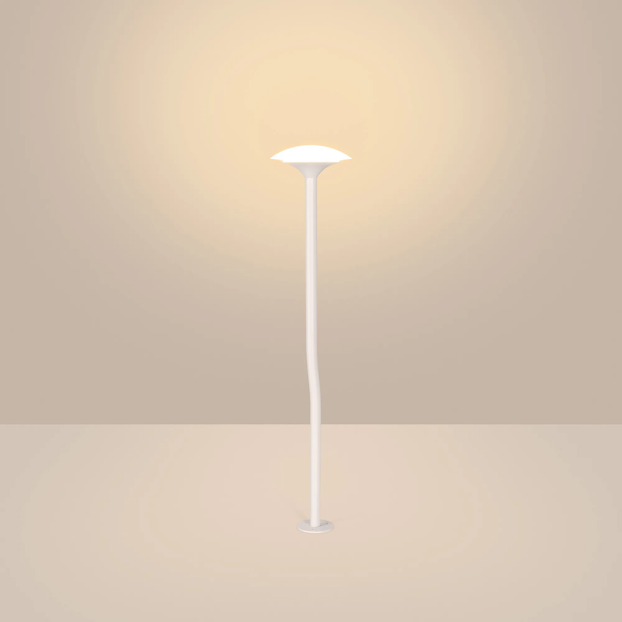 Уличный декоративный светодиодный светильник. Мощность 4 Вт, св. поток 490 лм, 122 лм/Вт, теплый 3000 K, CRI>80, угол излучения 100°, напряжение питания 24 В. Белый корпус из алюминия, прозрачный матовый рассеиватель из PMMA. Степень защиты IP65. Размер: диаметр 98 мм, высота 540 мм, высота углубления 155 мм. Монтаж в грунт с помощью основания пика (входит в комплект поставки). Драйвер приобретается отдельно.