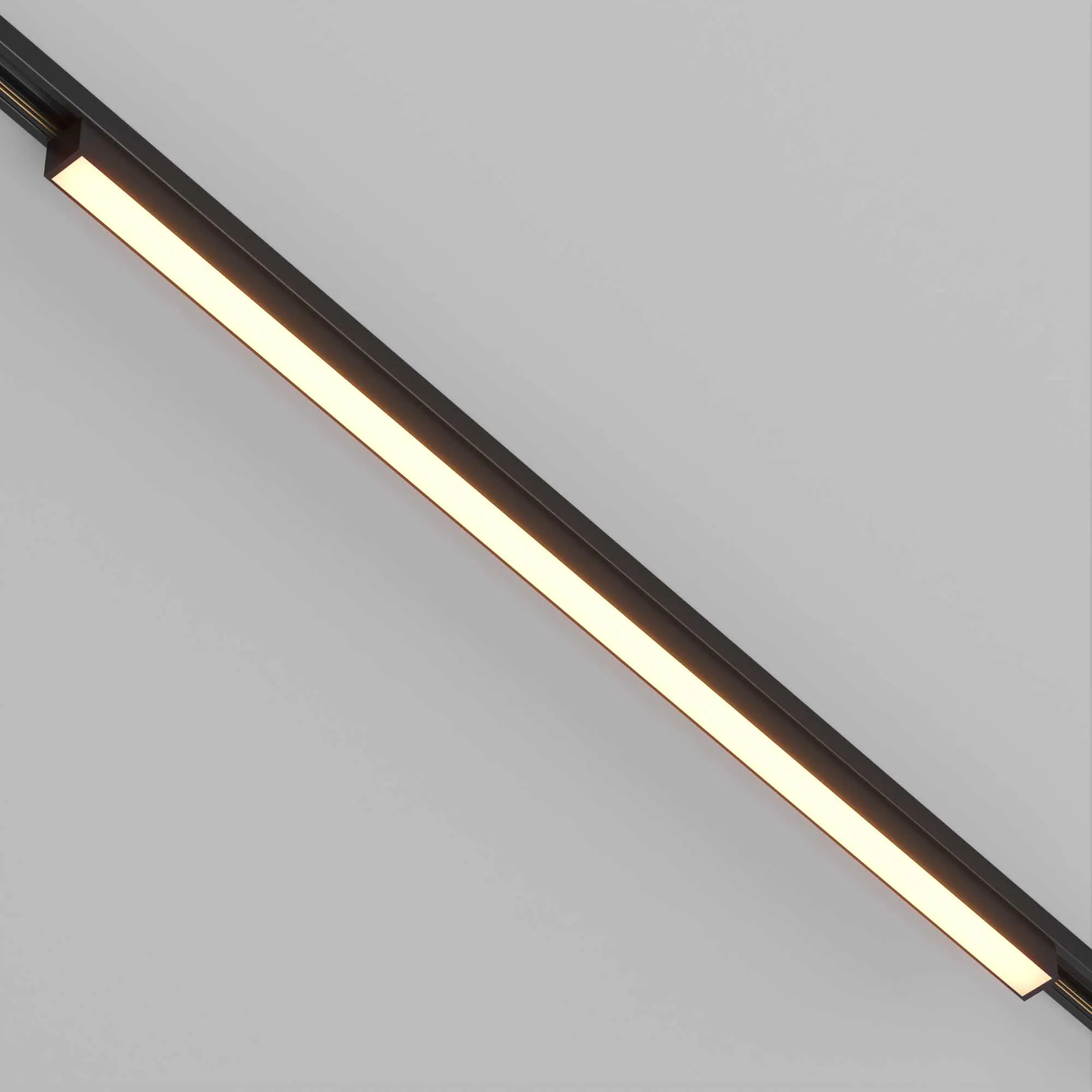 Светильник для магнитных треков MAG-ORIENT шириной 26 мм. Мощность 24 Вт, св. поток 1920 лм, 80 лм/Вт, теплый 2700 K, CRI>90, угол 100°, напряжение питания 48 В. Черный прямоугольный корпус из металл, экран поликарбонат, степень защиты IP20. Размер: длина 690 мм, ширина 22 мм, высота 42 мм. Монтаж на трек MAG-ORIENT. Пульсация <1%.