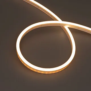 Гибкая герметичная лента (неон серии WAVE), сечение 06×12 мм. Светодиоды SMD2835 120 шт/м. Цвет свечения ТЕПЛЫЙ БЕЛЫЙ (3000 K), индекс цветопередачи CRI>90, световой поток 398 лм/м, угол излучения 125°. Мощность 8 Вт/м, питание 24 В. Оболочка из Полиуретана (PU). Класс пылевлагозащиты IP68. Размеры 1000×06×12 мм. Не подлежит резке. Горизонтальный изгиб SIDE, минимальный радиус изгиба 30 мм. Катушка 1 м. Цена за 1 м. Гарантия 3 года.