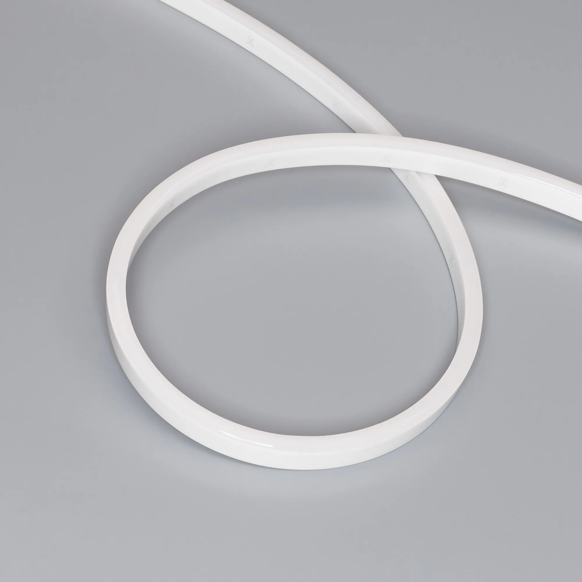 Гибкая герметичная лента (неон серии WAVE), сечение 06×12 мм. Светодиоды SMD2835 120 шт/м. Цвет свечения ТЕПЛЫЙ БЕЛЫЙ (2700 K), индекс цветопередачи CRI>90, световой поток 384 лм/м, угол излучения 125°. Мощность 8 Вт/м, питание 24 В. Оболочка из Полиуретана (PU). Класс пылевлагозащиты IP68. Размеры 1000×06×12 мм. Не подлежит резке. Горизонтальный изгиб SIDE, минимальный радиус изгиба 30 мм. Катушка 1 м. Цена за 1 м. Гарантия 3 года.