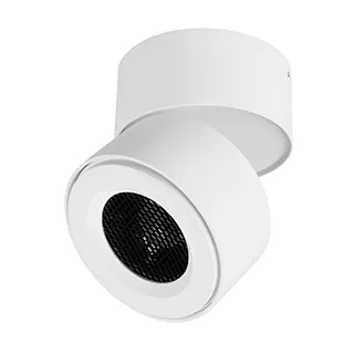 Накладной откидной поворотный светильник с изменяемой цветовой температурой. Мощность 12 Вт, св. поток с решеткой honeycomb 960 лм, св. эффективность 80 лм/Вт, теплый 2700 K, теплый 3200 K, дневной 4000K (переключается), CRI>90, угол свечения 36°, угол поворота 360°, угол наклона 90°. Белый круглый корпус из алюминия, степень защиты IP20. Размер: диаметр Ø85 мм, высота 95 мм. Питание AC 220-240V, 12Вт, драйвер встроенный (300mA, 27-43V). Пульсация <1%.