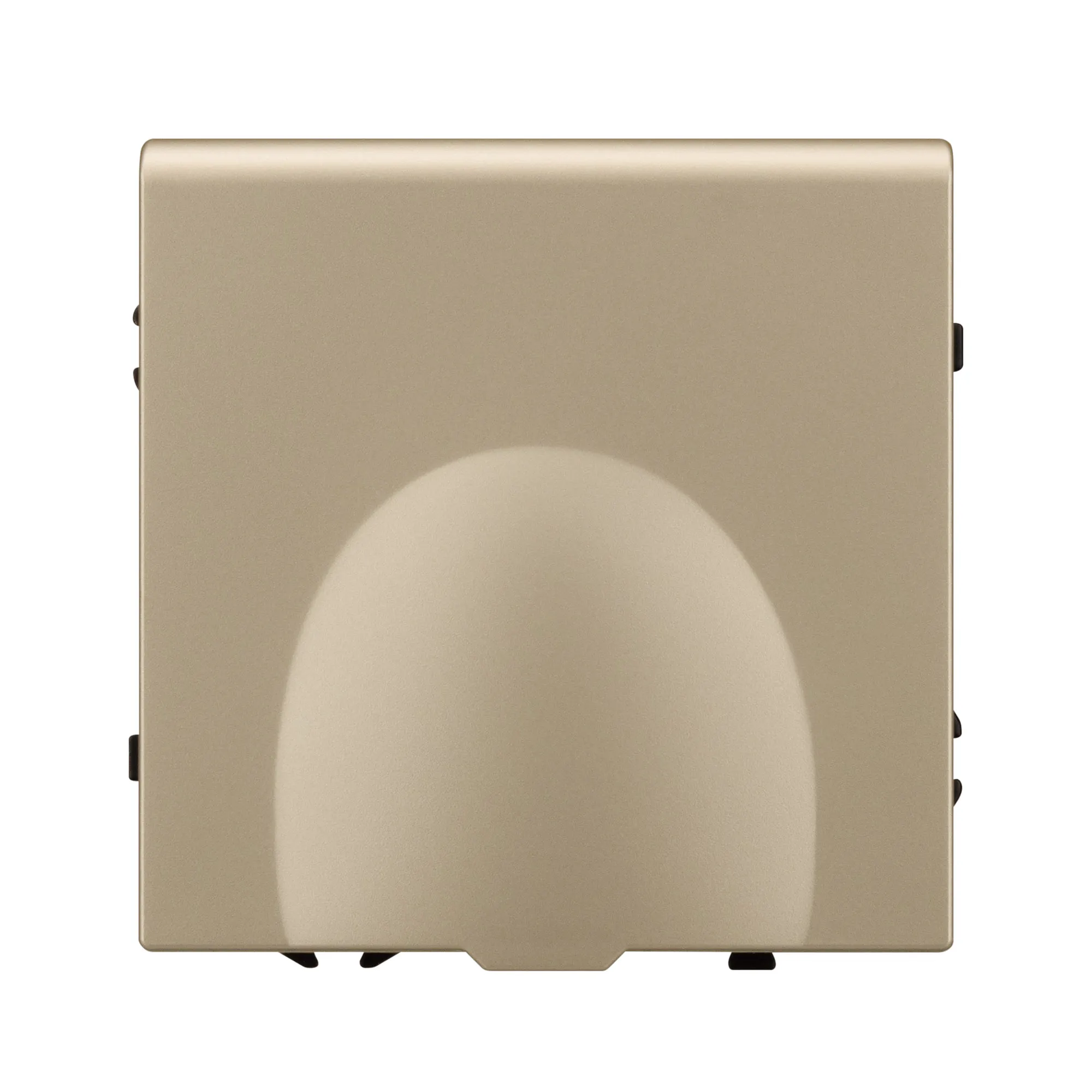 Механизм розетки с заземлением и влагозащитной крышкой на 1 пост. Цвет - золотой, с Soft-Touch покрытием. Без фронтальной рамки. Уровень пылевлагозащиты IP44. Розетка устанавливается в стандартный подрозетник круглого сечения диаметром 60мм.