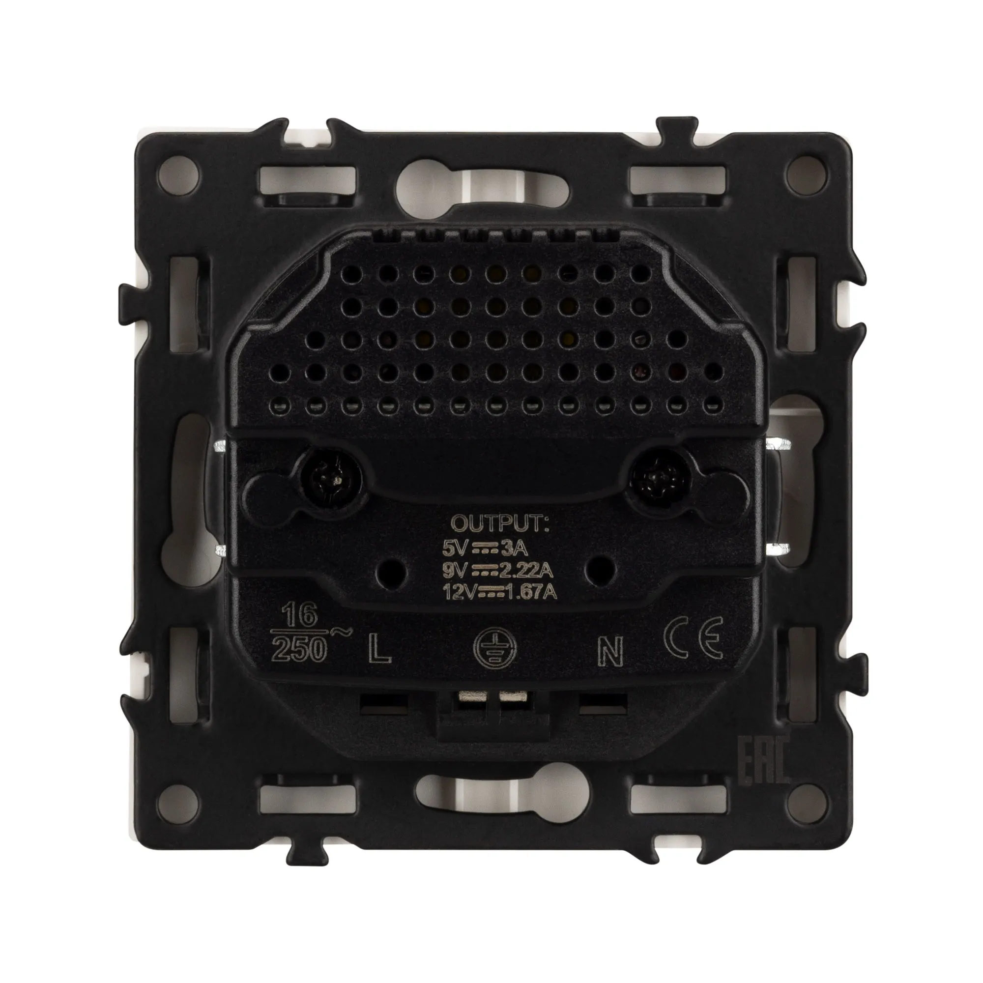 Механизм розетки с заземлением 1 пост 2 USB Type A+C порта. Цвет - белый, с Soft-Touch покрытием. Без фронтальной рамки. Уровень пылевлагозащиты IP20. Розетка устанавливается в стандартный подрозетник круглого сечения диаметром 60мм.