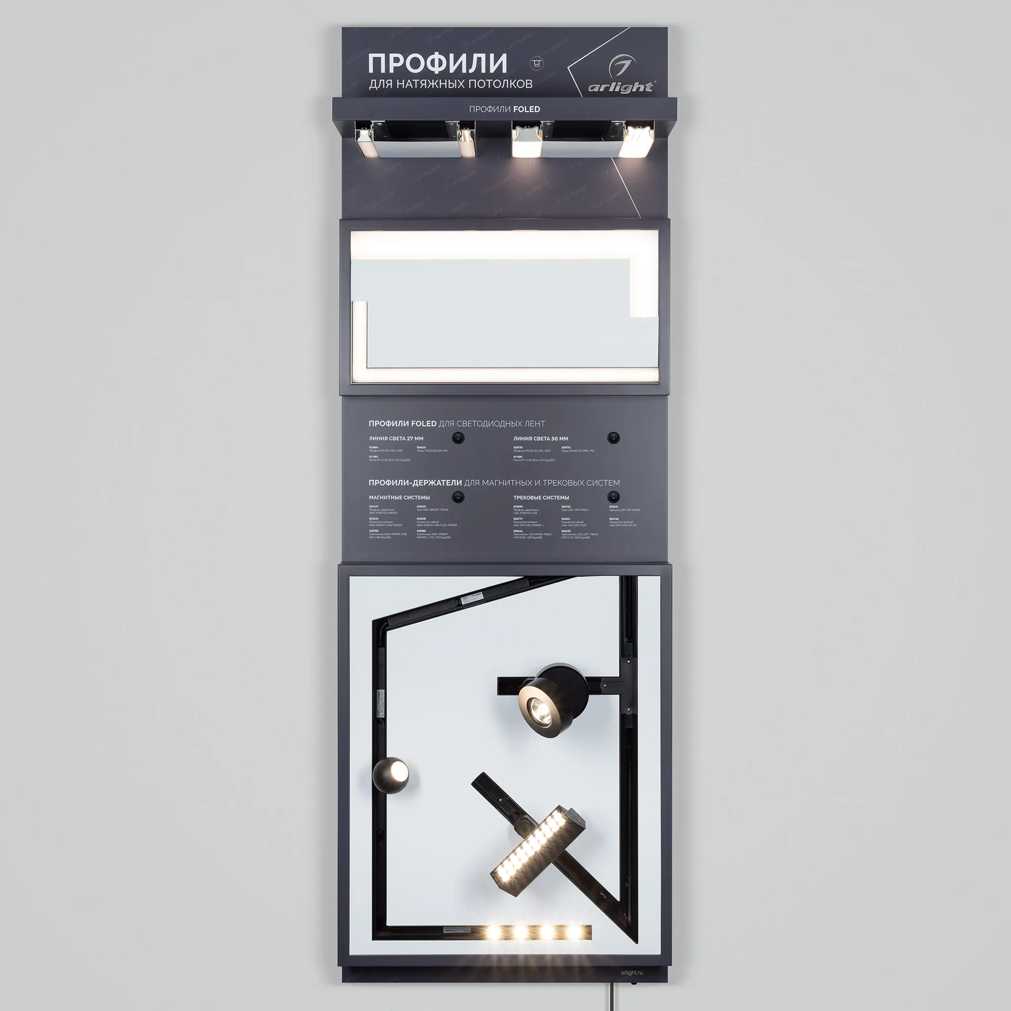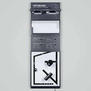 На стенде представлен ассортимент профилей Arlight для натяжных потолков: