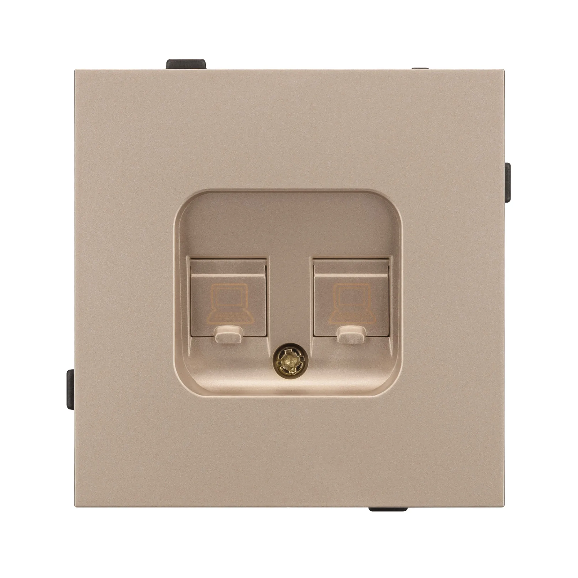 Механизм компьютерной розетки на 2 поста 6-й категории. Цвет - золотой. Без фронтальной рамки. Уровень пылевлагозащиты IP20. Розетка устанавливается в стандартный подрозетник круглого сечения диаметром 60мм.