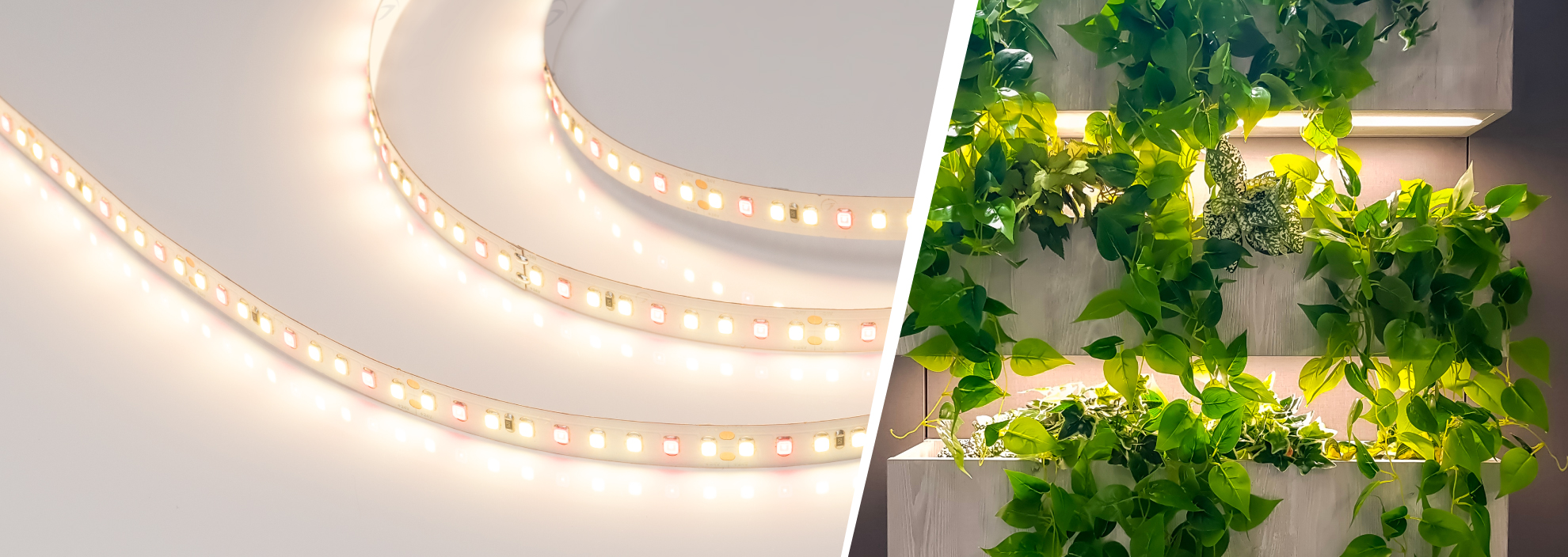 Новинки представлены двумя лентами: FITOLUX-A144-10mm 24V Day4000-Red и FITOLUX-A144-10mm 24V Warm3000-Red с дневным белым (4000 К) и теплым белым (3000 К) цветом свечения.