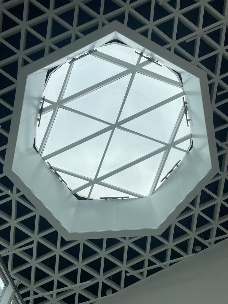 Важную роль в оформлении комплекса играют световые элементы. Светодиодные RGBW-прожекторы были установлены внутри стеклянных конструкций входного павильона музейного комплекса. За счет этого в темное время суток создается динамический эффект заливки помещения светом.