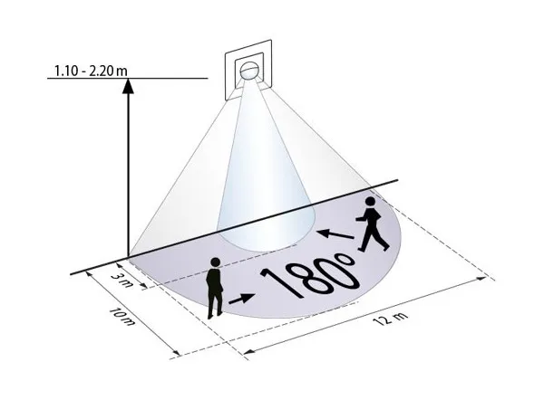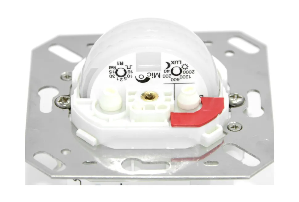- Комбинированный датчик движения/шума в виде настенного выключателя с диапазоном обнаружения 180°