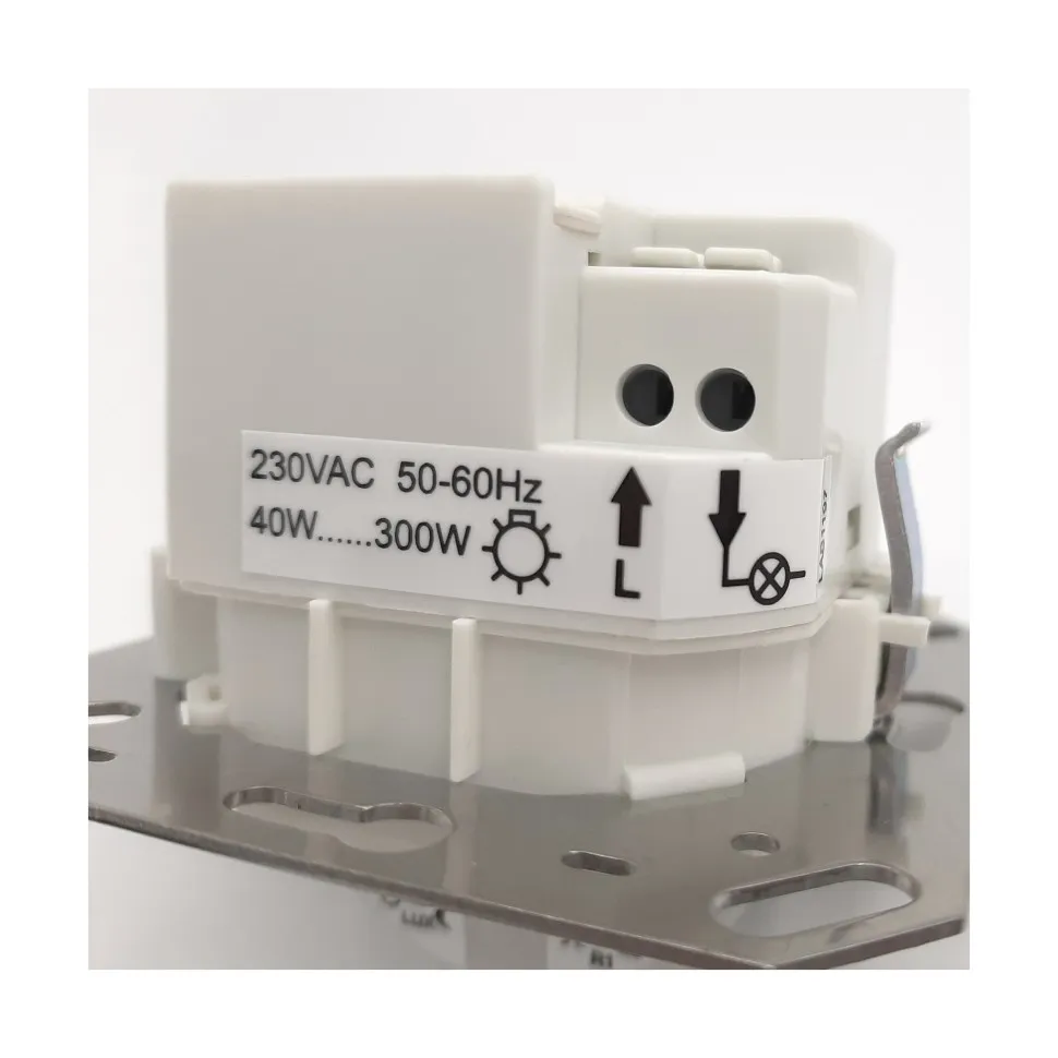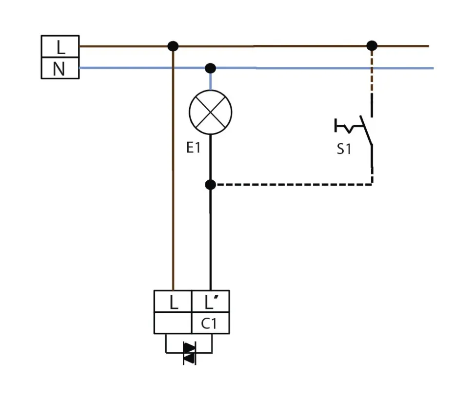 - Симисторное исполнение в двухпроводной технологии, без нулевого провода, для работы ламп накаливания мощностью до 300 Вт