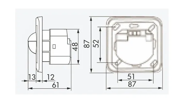 - Габариты Д 87 x Ш 87 x В 61 мм