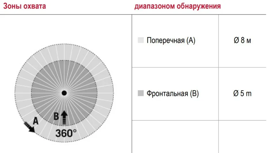 | диапазоном обнаружения Фронтально | Ø 5 м |
