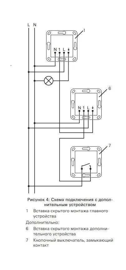 • Управление дополнительными устройствами с помощью клавишно-кнопочного выключателя.