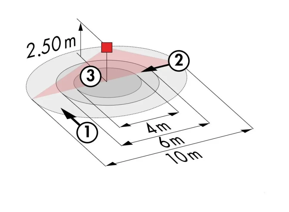 - Дальность действия перпендикулярно макс. Ø 10 м.