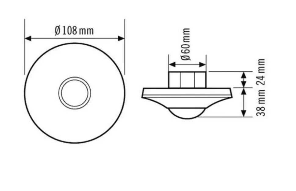 - Датчик присутствия с углом охвата 360° для потолочного монтажа
