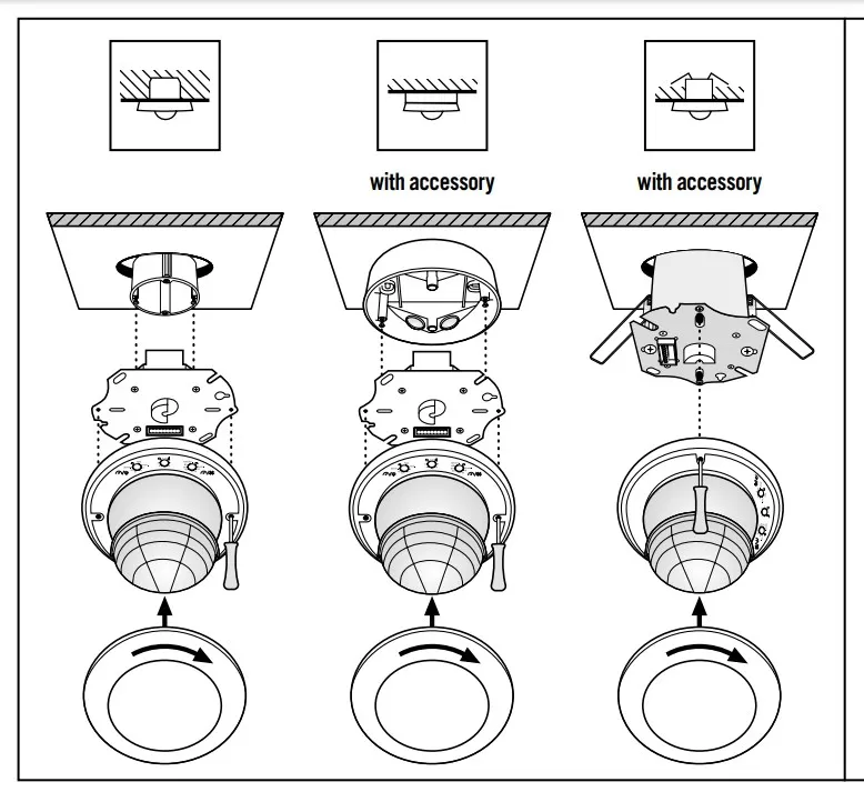 IP20/IP54 с коробкой для открытой проводки (заказывается отдельно) IP20 как версия для установки на потолок (монтажный комплект заказывается отдельно) |