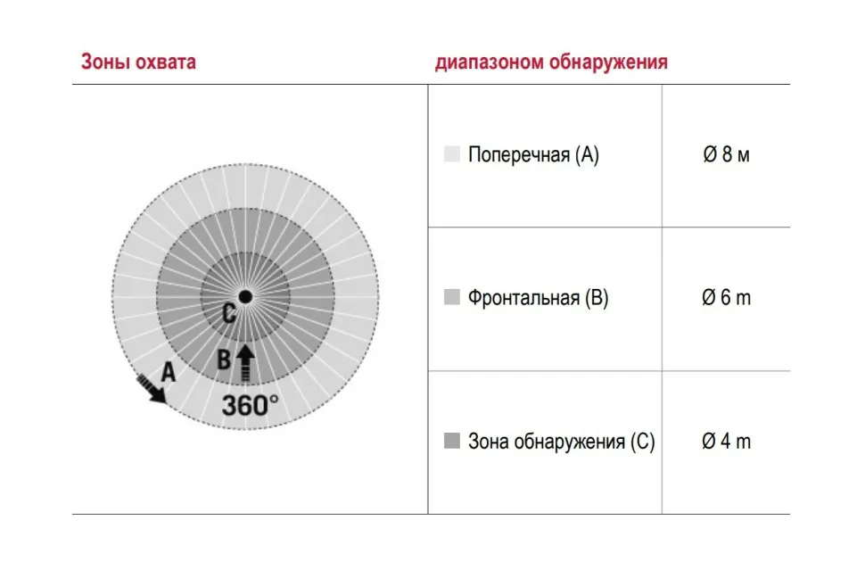 | Угол охвата, диапазон обнаружения | Ø 4 м |