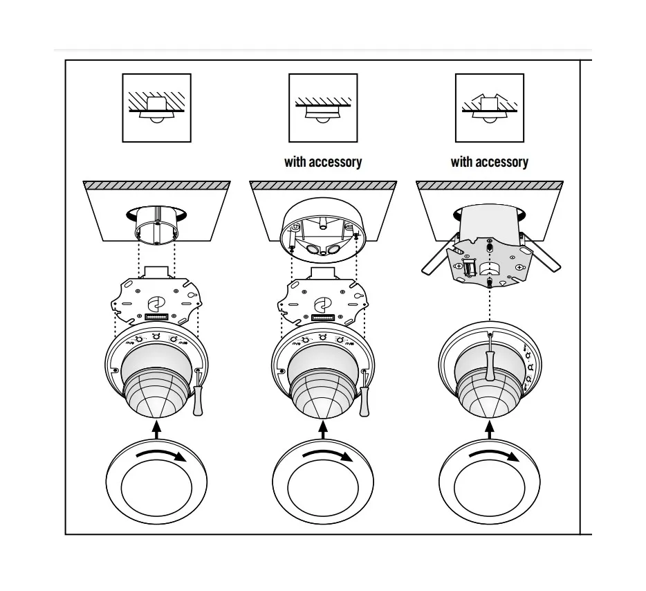 IP20/IP54 с коробкой для открытой проводки (заказывается отдельно) IP20 как версия для установки на потолок (монтажный комплект заказывается отдельно) |