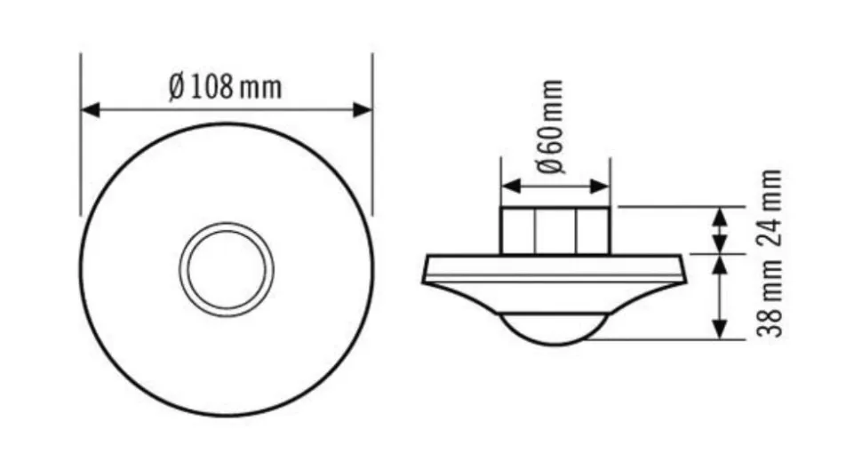 - Датчик присутствия с углом охвата 360° для потолочного монтажа