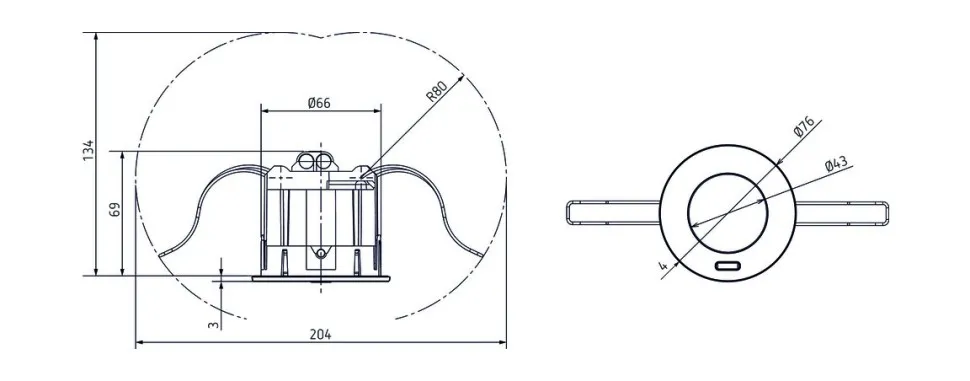 - Настраиваемая зона обнаружения (стандартная и уменьшенная). Настраивается через ETS или с помощью пульта ДУ