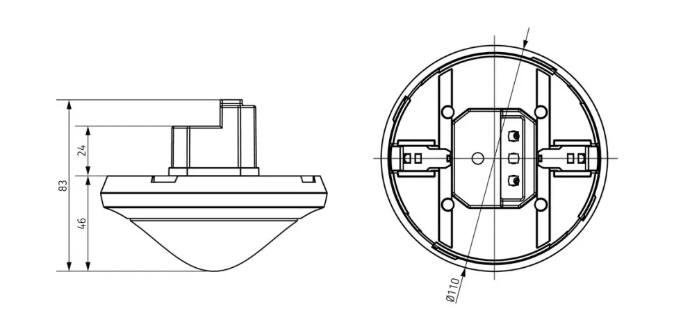 Зона обнаружения 452 m² (ø 24 m | 360°)