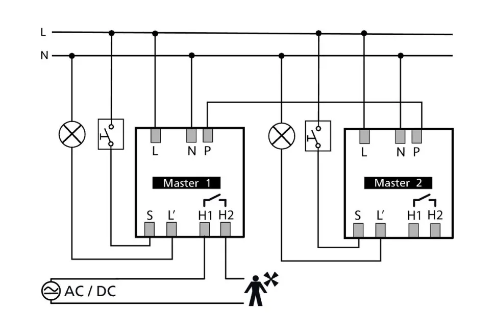 • Возможность подключения выключателей (кнопка/переключатель) для ручного переключения с автоматического распознавания типа выключателя - кнопка или переключатель