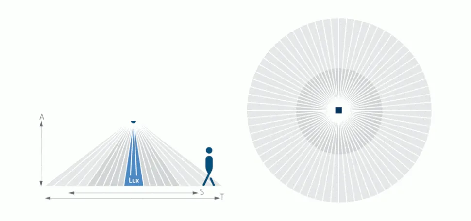 • Круглая зона обнаружения 360°, до Ø 8 m (64 кв.м)