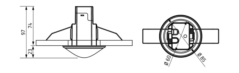 • Круглая зона обнаружения 360°, до Ø 9 m (64 кв.м)