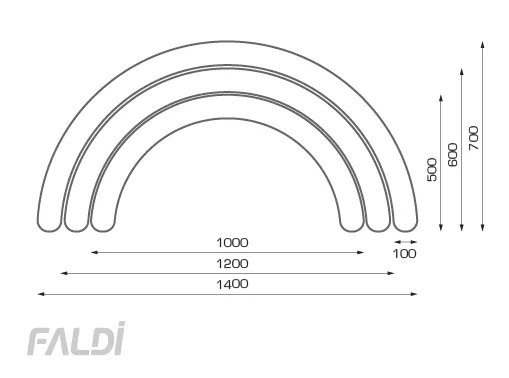 Световые сегменты окружности различных диаметров в жестком алюминиевом корпусе.