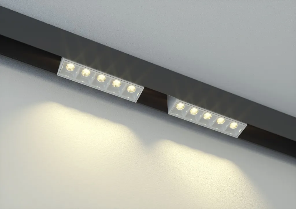 Основным способом установки светильников является крепление к магнитному шинопроводу с помощью магнитов.