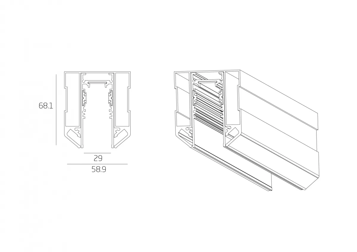 3 MAGNETIC. TRACK.NP25-300 (3м) 3 м / напряжение питания 48 В - - - 29*67*3000 мм