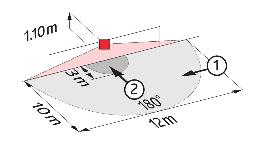 Зона обнаружения: горизонтальный 180° (настенный монтаж)