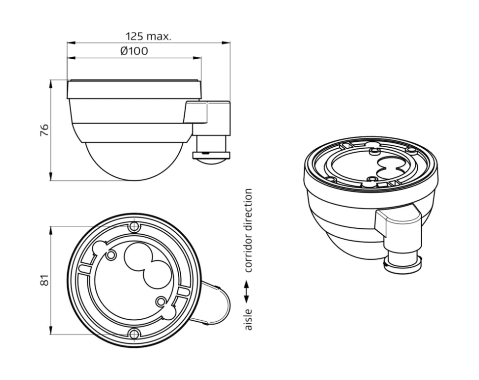 - Мультисенсор DALI-2 (устройство ввода) для поверхностного монтажа на большой высоте монтажа