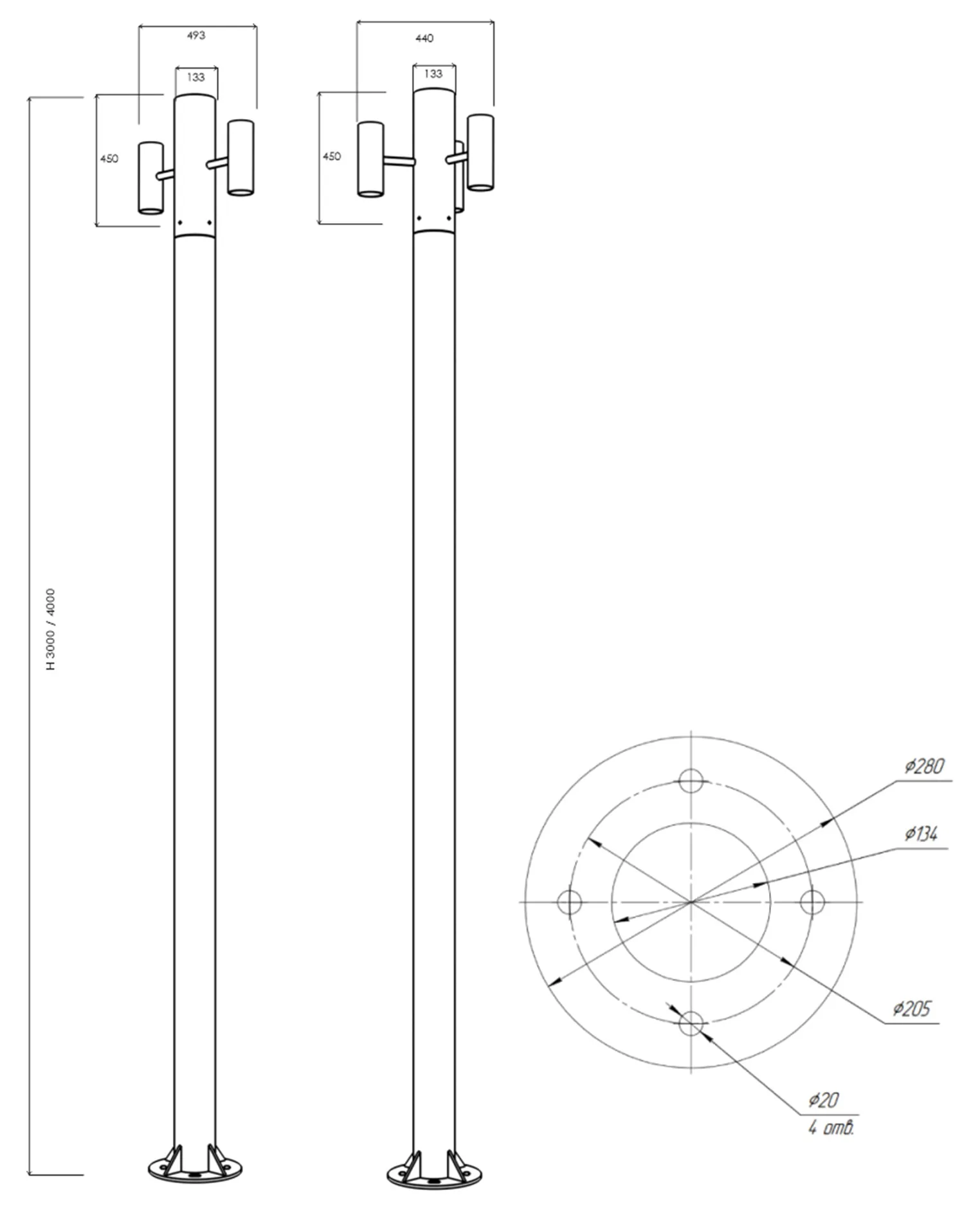 | USND-4-30-030 | L493 B133 H3000 | 30 W | 4531 lm | 3840 lm | 128 lm/w | 0,1967м³ | 48,1 | 12 |