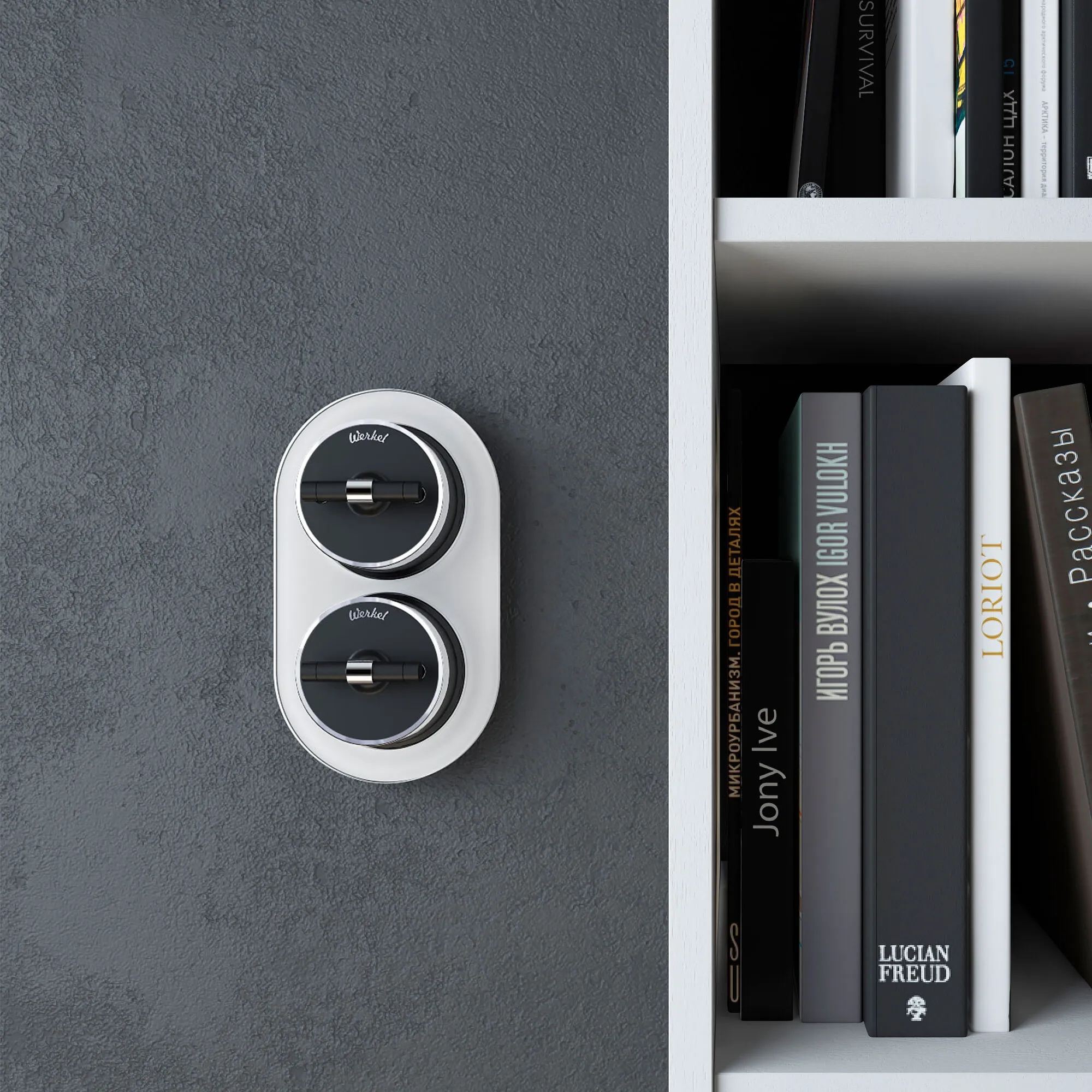 Дополнить образ помогут рамки Werkel из металла, стекла, и дерева, а так же аксессуары для накладного монтажа проводки.