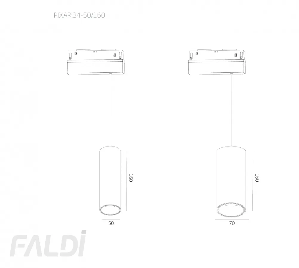 Подвесной трековый светильник Pixar.P34-50/160. d50*160мм для магнитного шинопровода Magnetic.Track.34 / Magnetic.Track.V.34 / Magnetic.Track.NP.34
