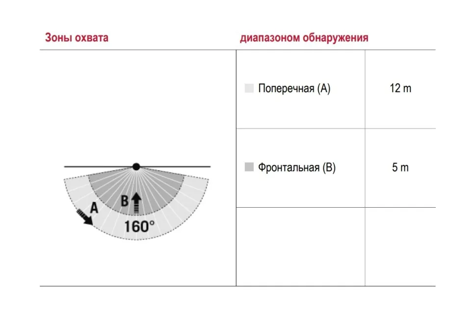 | диапазоном обнаружения Фронтально | 5 м |