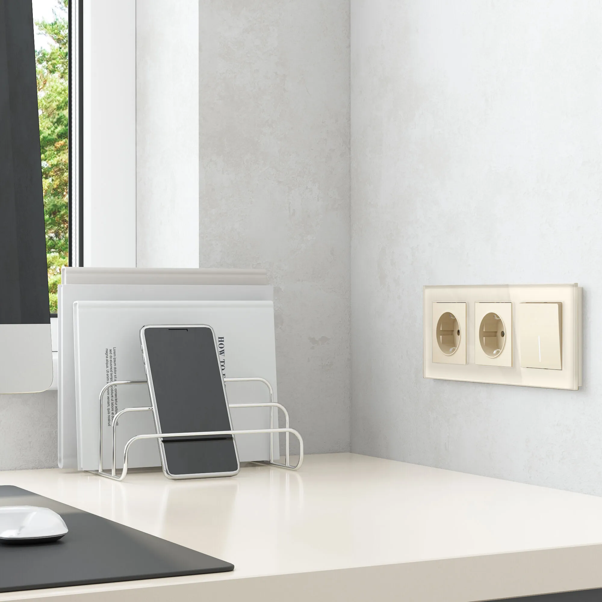 Рамка Favorit выполнена из закаленного стекла толщиной 5 мм. Идеально отшлифованные грани, подчеркнутые прямой фаской, создают необычайную игру света и придают дополнительный объем стеклу.