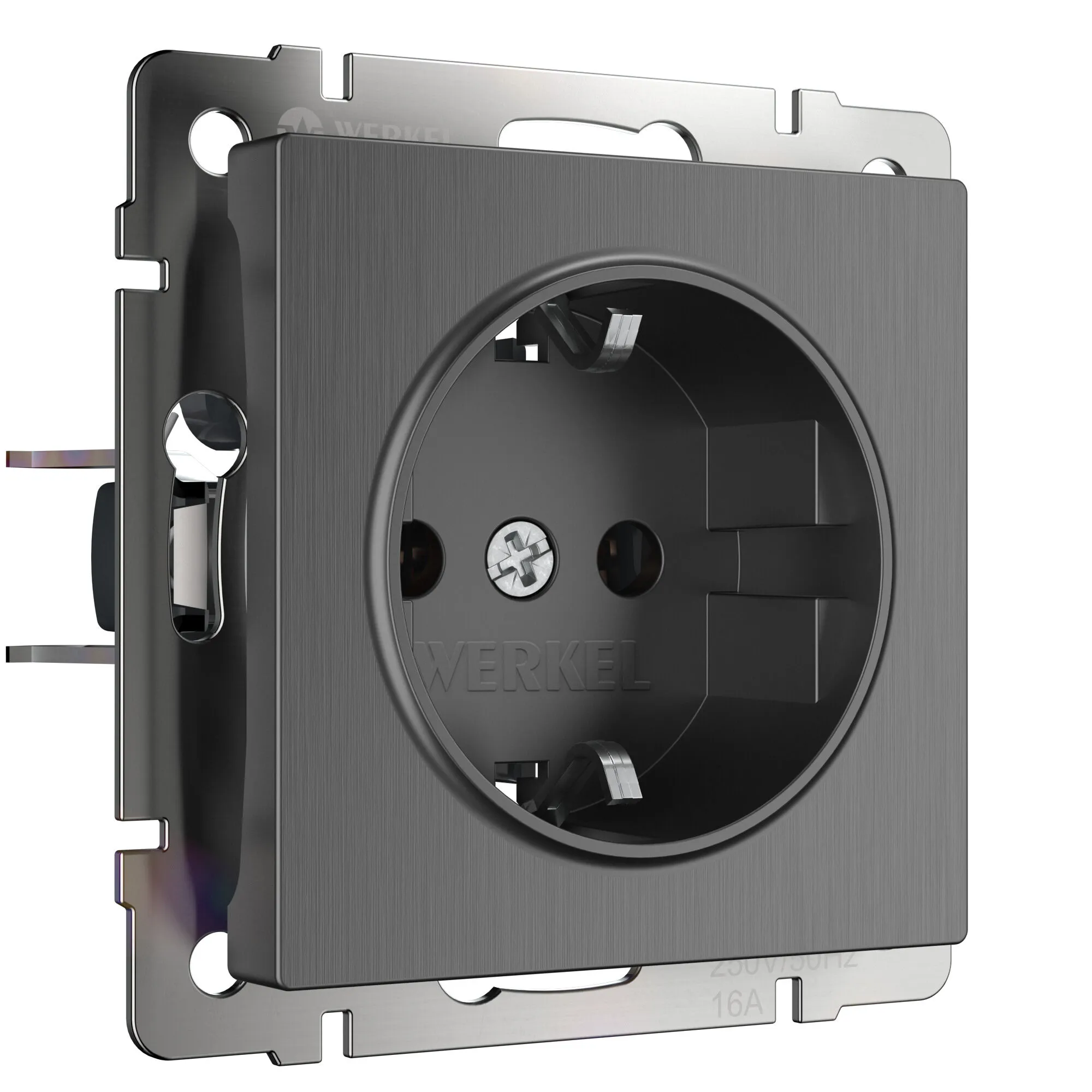 Розетка с заземлением и шторками (графит рифленый) W1171104
