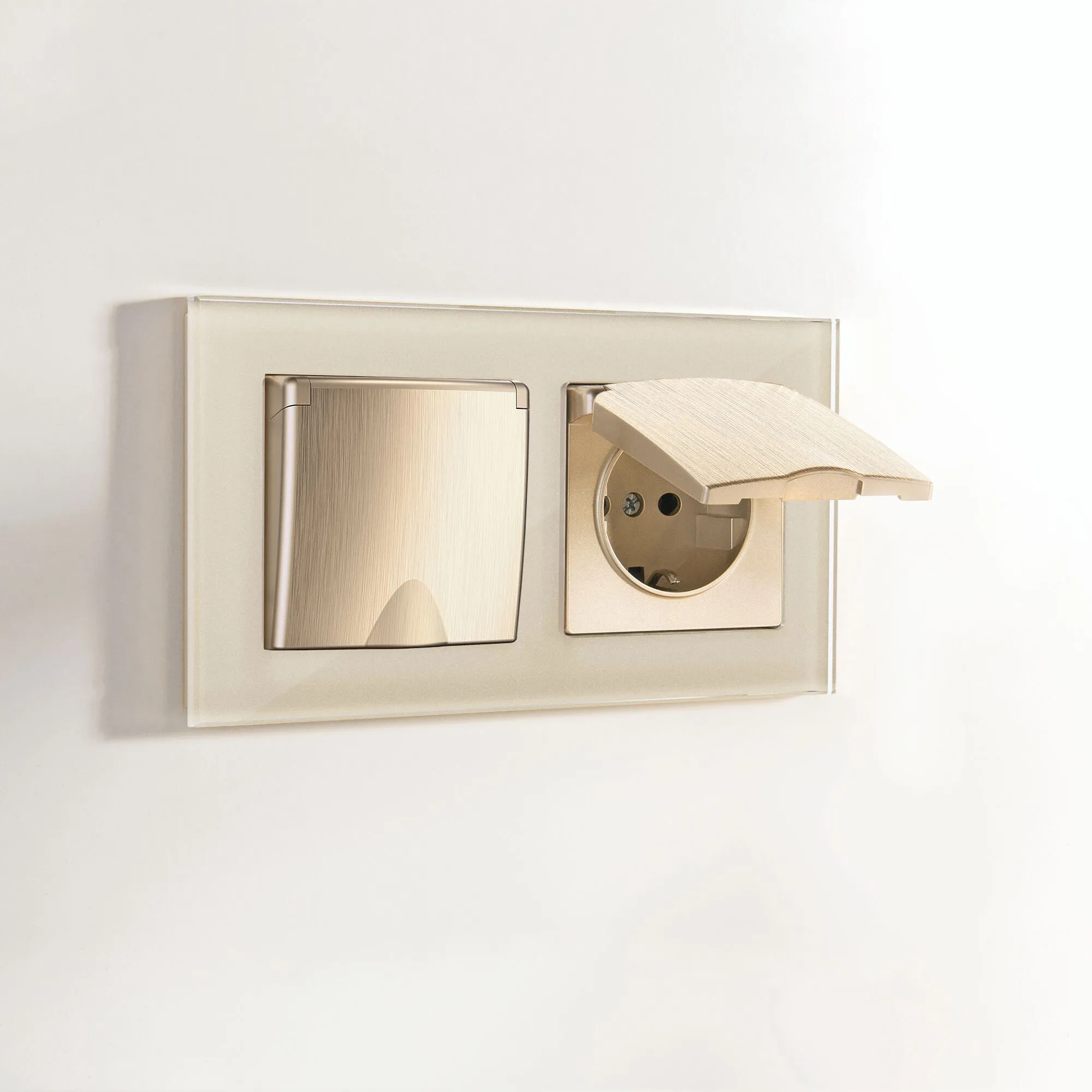 Розетка влагозащ. с зазем. с защит. крышкой и шторками (шампань рифленый) W1171210