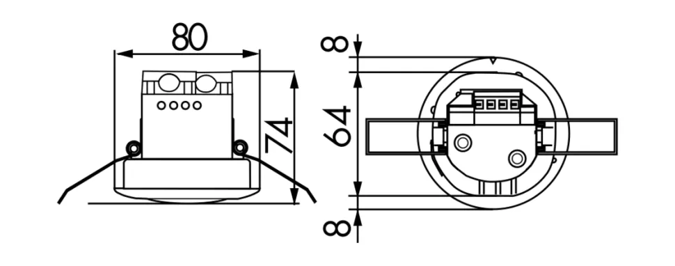 - Габариты Ø 80 мм x 74 мм