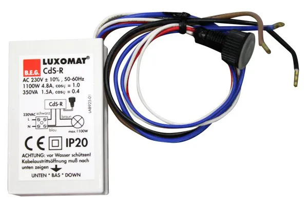 • Сумеречный выключатель LUXOMAT® CdS-R с коммутационным реле и выносным сенсором, для установки в наружные светильники и для использования в распаечных коробках