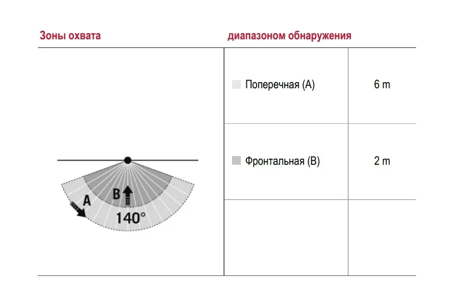 | диапазоном обнаружения Фронтально | 2 м |