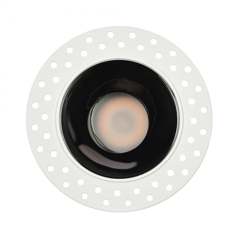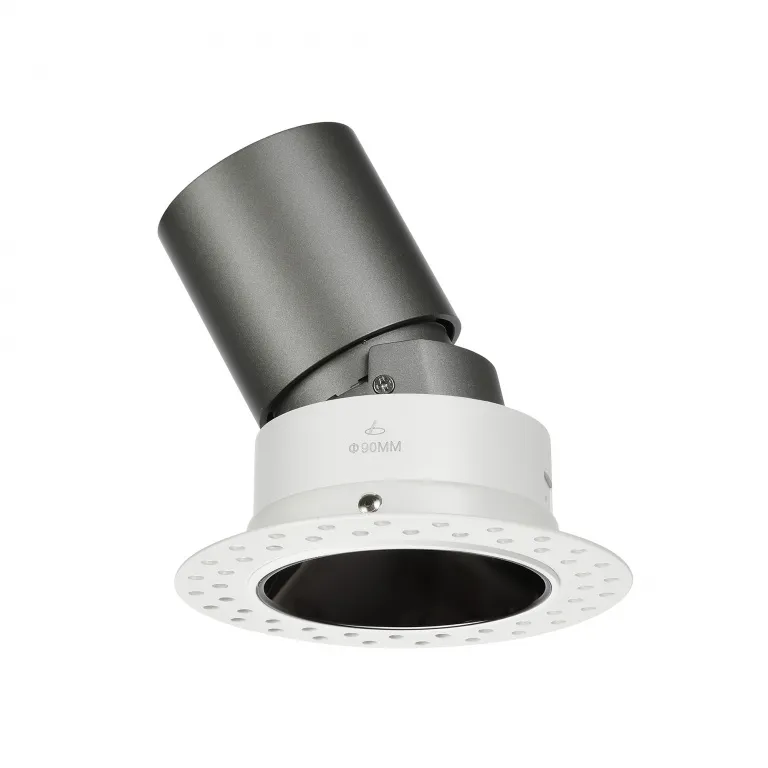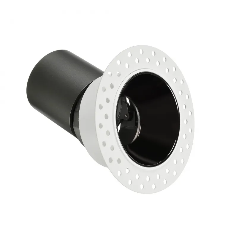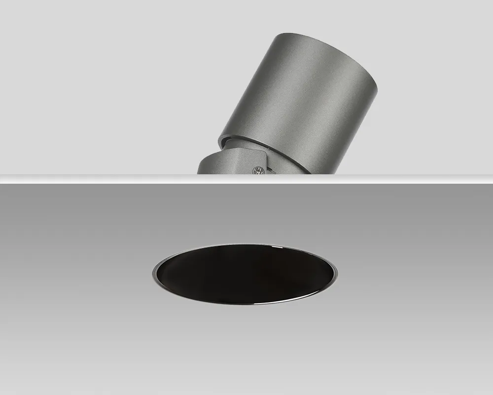 Безрамочный встраиваемый акцентный светодиодный светильник круглого сечения с функцией регулировки угла светового потока от 0° до 25° для монтажа под штукатурку.