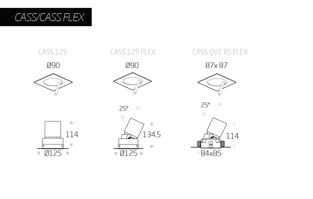 | 1 | CASS.125.FLEX | URG<19, RA>90, источник тока - TRIDONIC (Австрия) | 15 Вт | 1650 Лм @30° | 3000К | d125*135 мм (монтаж: d90мм) |
