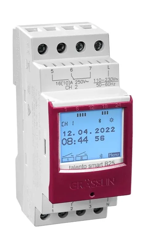 Возможности подключения и средства мобильного программирования делают продукты серии Talento Smart предпочтительными, когда речь идет о приложениях для переключения времени. Компактная конструкция, совместимая с DIN-рейкой, обеспечивает быструю установку в существующей инфраструктуре; в то же время Bluetooth Простое программирование вдали от шкафа управления. Повысьте свою производительность, регулируя время переключения со своего смартфона или планшета с помощью мобильного приложения для Talento Smart (доступно в Google Play и App Store). Астрономический день/ночь Схема с автоматическим определением местоположения обеспечивает быстрое и точное управление.