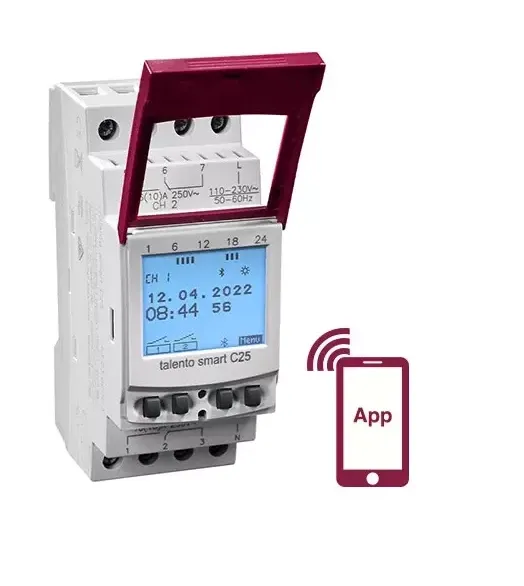 Возможности подключения и средства мобильного программирования делают продукты серии Talento Smart предпочтительными, когда речь идет о приложениях для переключения времени. Компактная конструкция, совместимая с DIN-рейкой, обеспечивает быструю установку в существующей инфраструктуре; в то же время Bluetooth Простое программирование вдали от шкафа управления. Повысьте свою производительность, регулируя время переключения со своего смартфона или планшета с помощью мобильного приложения для Talento Smart (доступно в Google Play и App Store). Астрономический день/ночь Схема с автоматическим определением местоположения обеспечивает быстрое и точное управление.