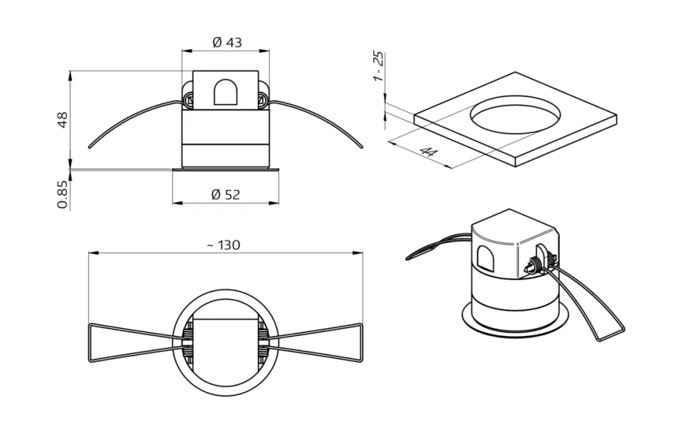 • Включает в себя жалюзи и зажимное кольцо для установки в светильники.