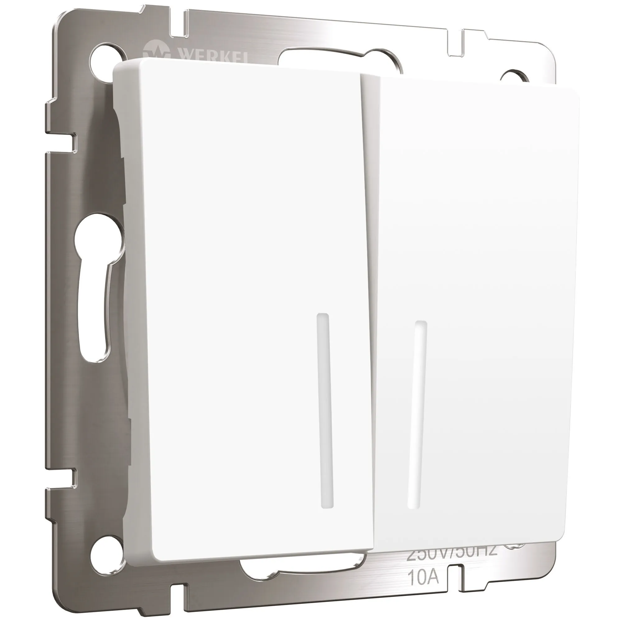 Выключатель двухклавишный проходной с подсветкой (белый матовый) W1122161